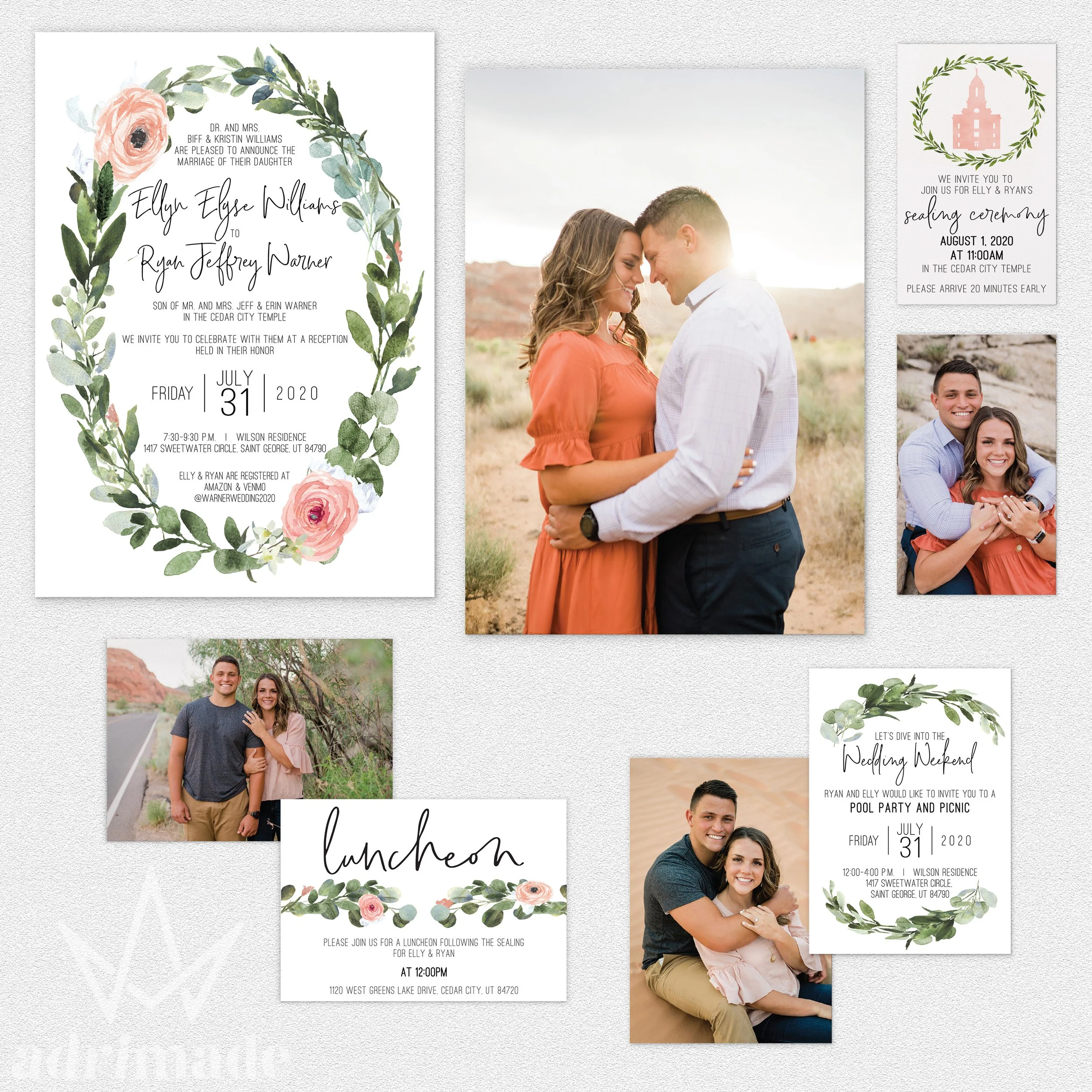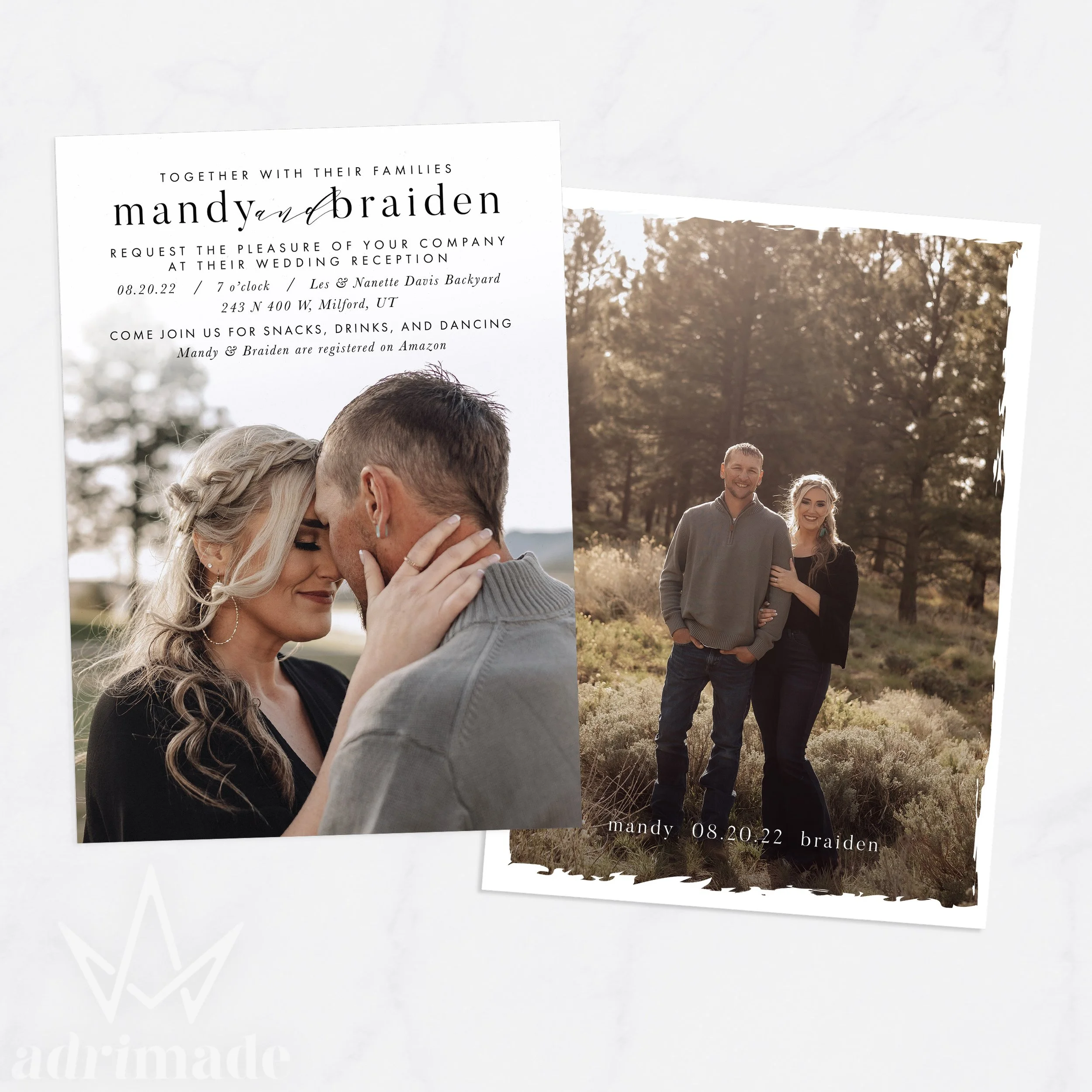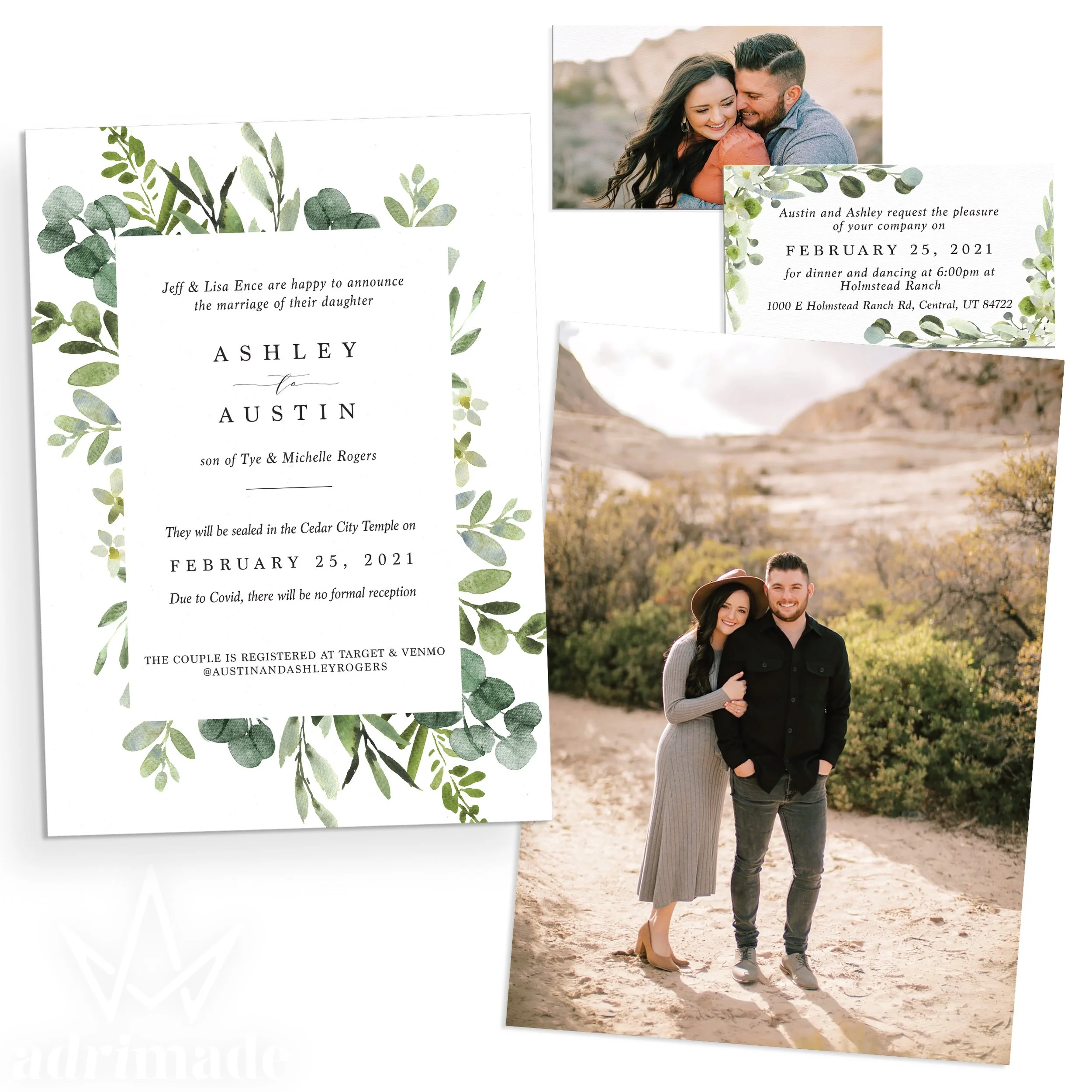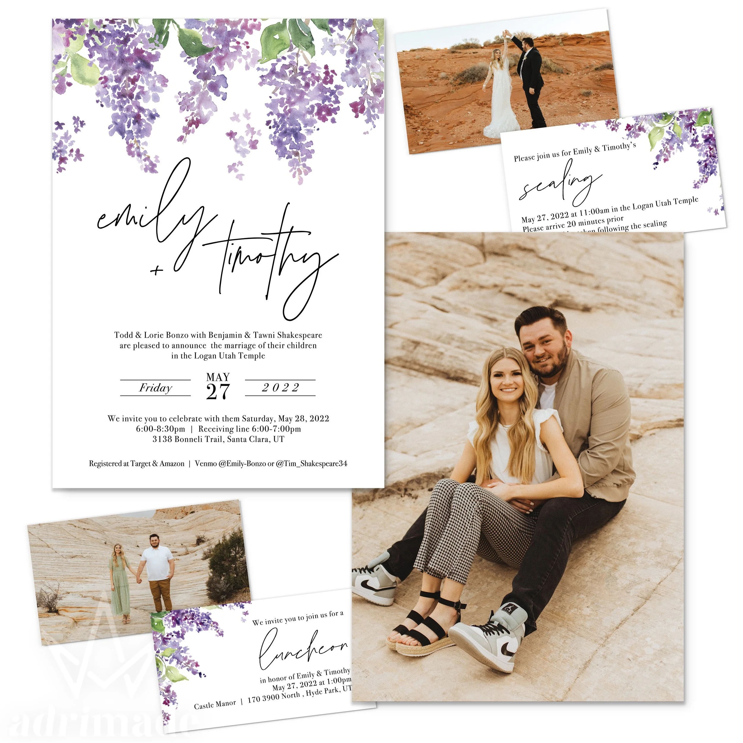 All invitation packages include a custom design, envelopes, and shipping