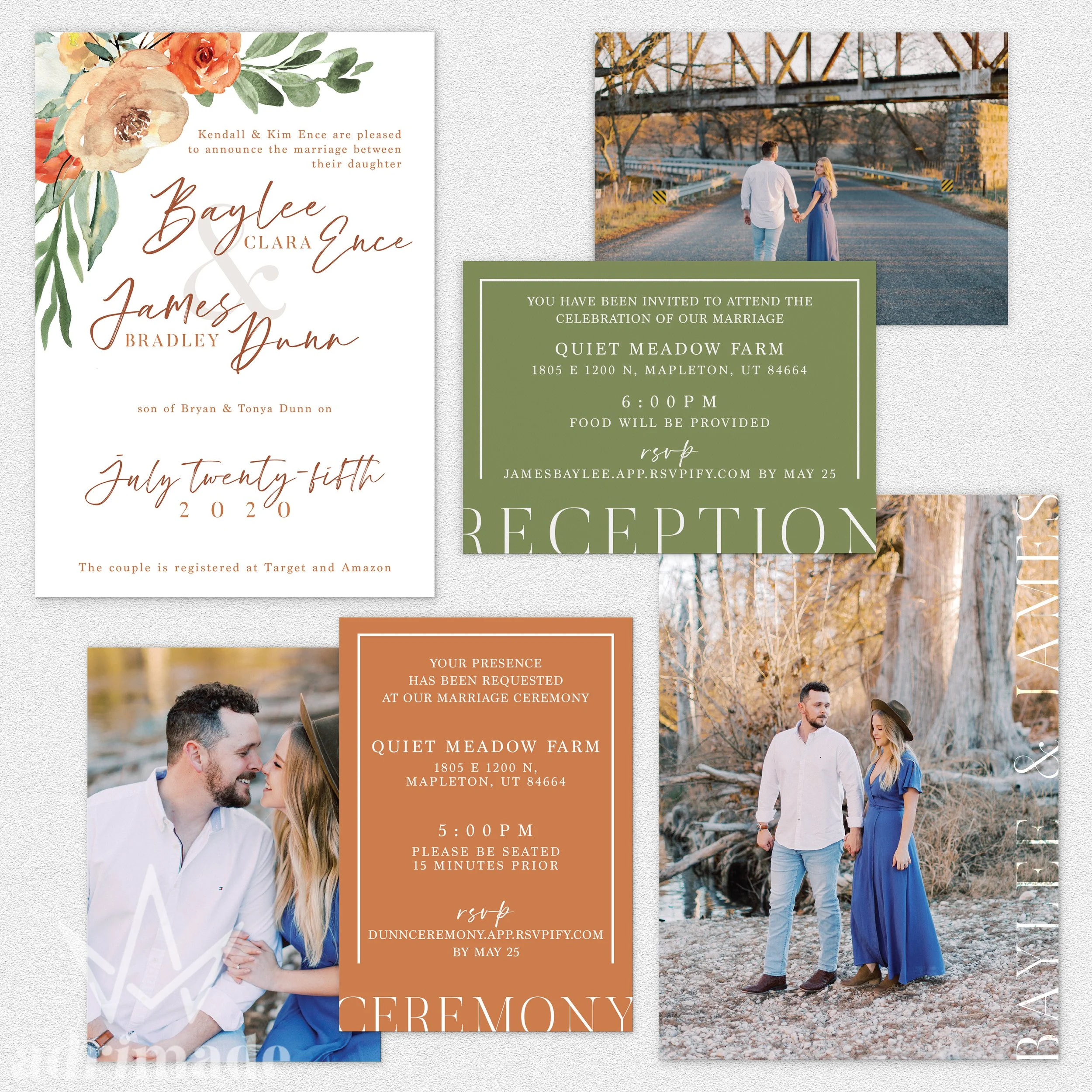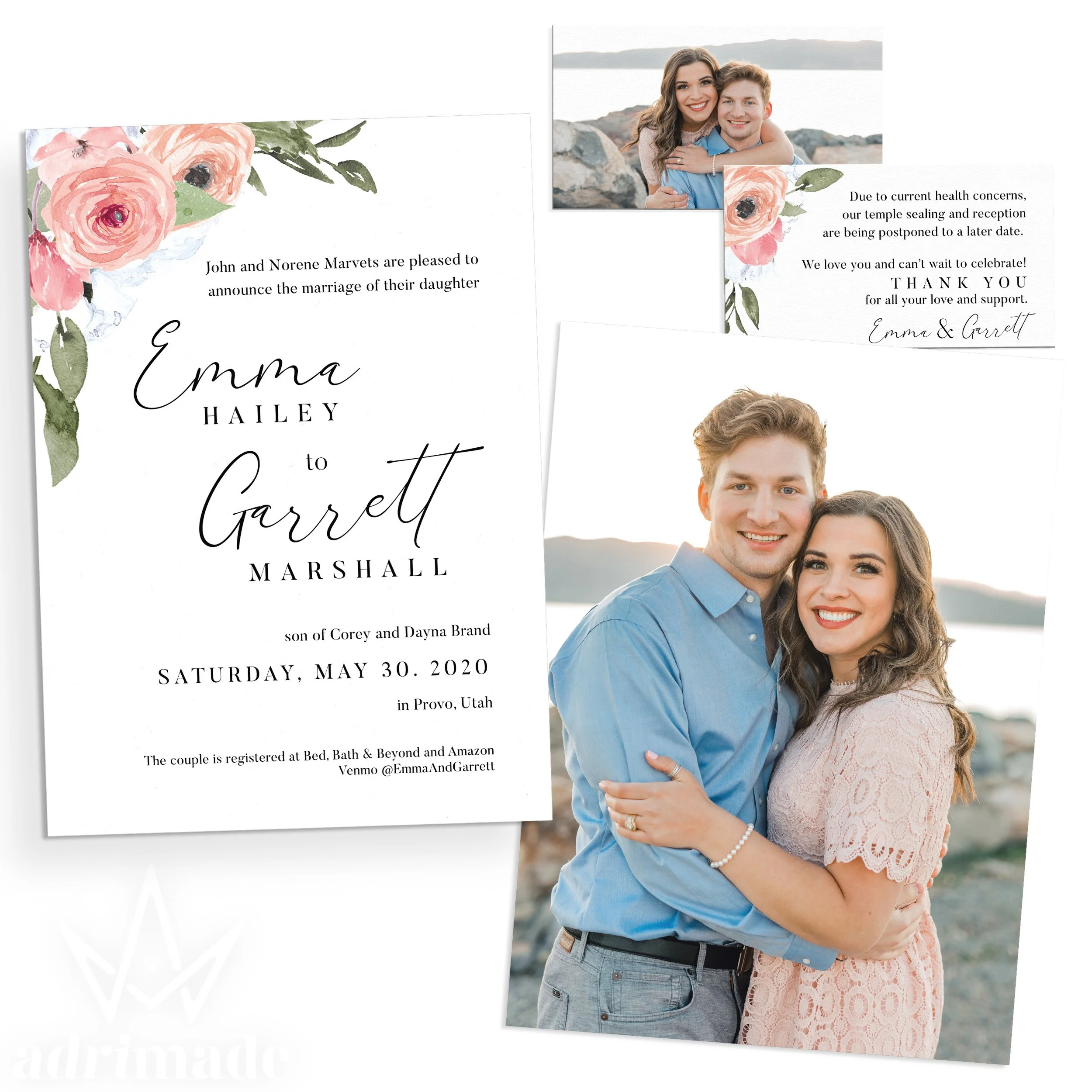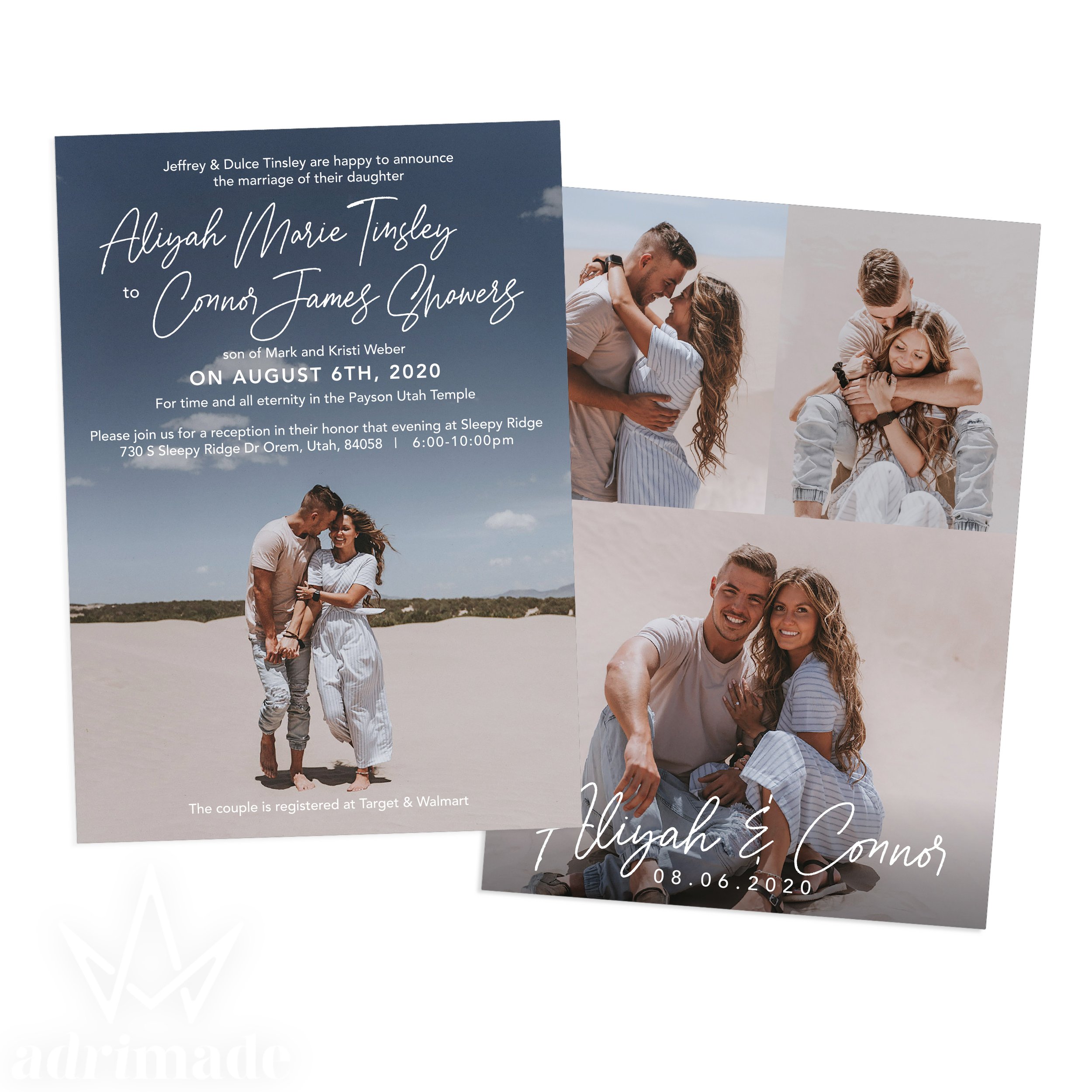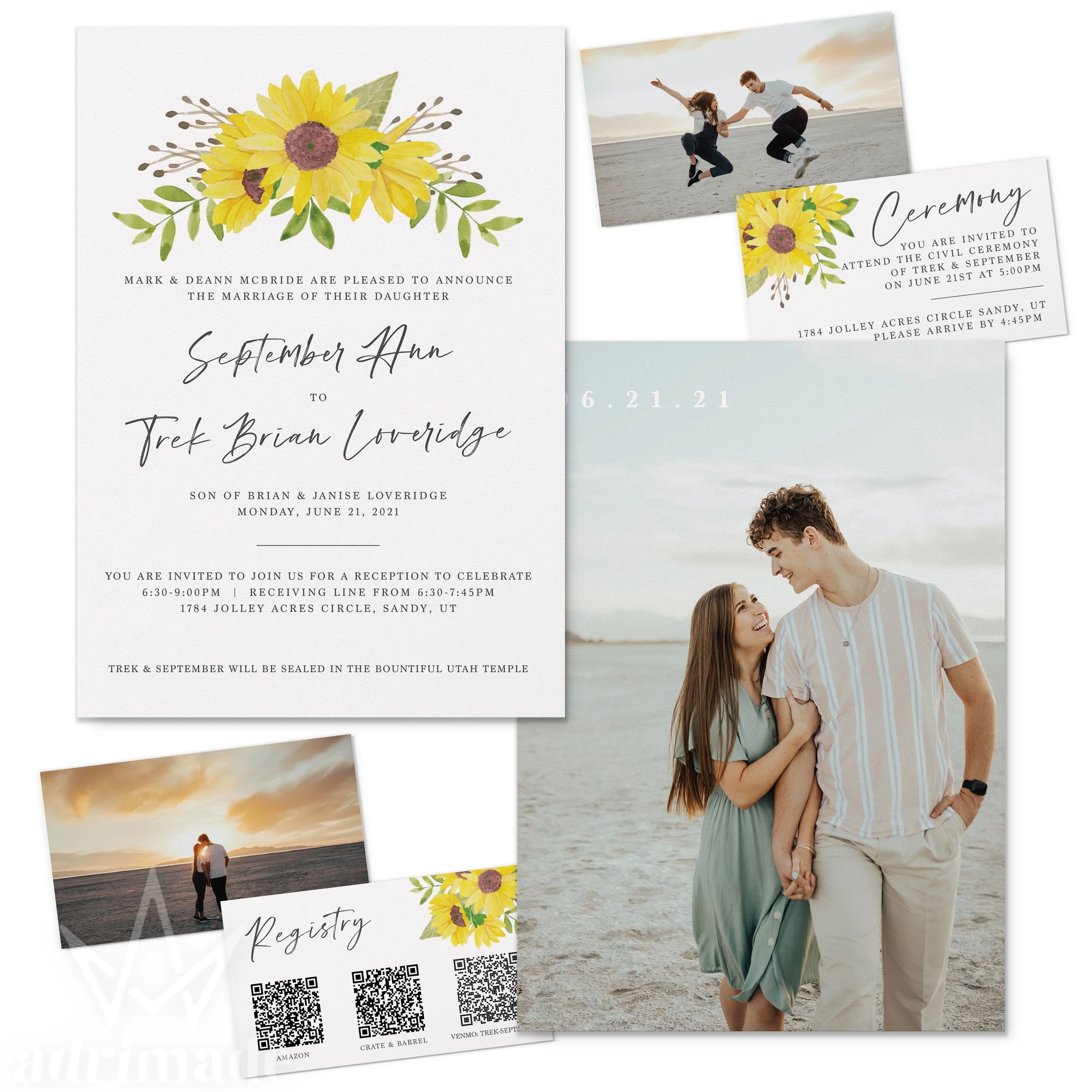All invitation packages include a custom design, envelopes, and shipping
